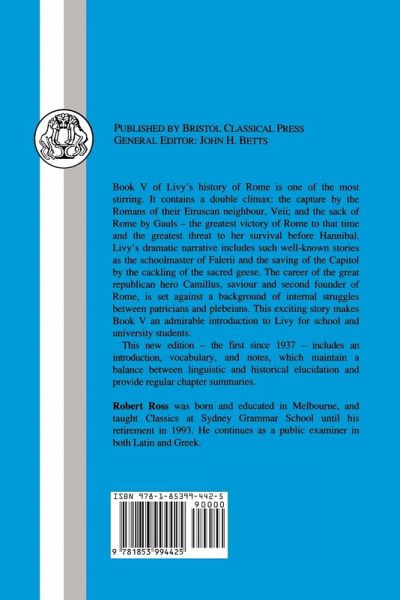 The fifth book of Livy's Roman history. It contains a literary and historical introduction and a vocabulary. The notes offer discussion of historical and linguistic points of significance, and each section ends with a summary paragraph that concerns language, matters of history, and composition.