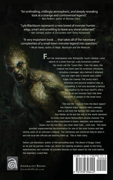 From the swamplands near Bishopville, South Carolina, come reports of a seven-foot-tall, scaly humanoid creature the locals call the "Lizard Man." Over the years, the creature has been seen by numerous witnesses, including a teenager who claimed it attacked him one night near a remote area called Scape Ore Swamp. The young man's testimony and physical evidence was so compelling, it not only launched a serious investigation by the local sheriff's office but an all-out monster hunt that drew hundreds of people to the small town. This real-life "creature from the black lagoon" has inspired major national news coverage, even a call from the famous CBS news anchor, Dan Rather, as he and the rest of the world clamored to know more about Bishopville's elusive monster. The case is often mentioned in books, websites, and television shows, but the full story has never been told... until now. This book provides unprecedented documentation for one of the most bizarre and hair-raising cases of an unknown creature. The witnesses are convinced they've seen it, and the local law officials are backing them up. This is their story. Follow Lyle Blackburn, author of the bestselling book The Beast of Boggy Creek, as he and his partner, Cindy Lee, revisit the sighting locations, speak to the living eyewitnesses, and consider all possible theories in their search for the truth behind the legendary Lizard Man.
