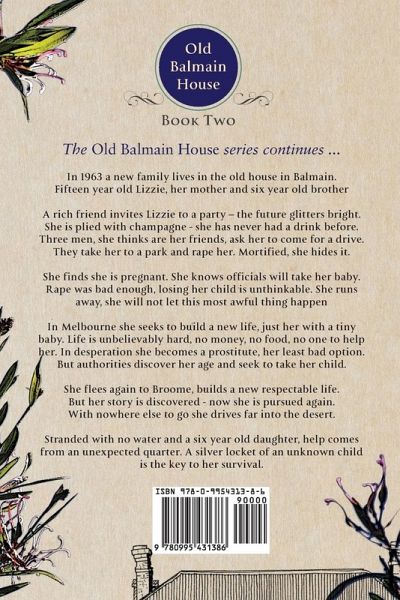 Updated version of the second book in the 'Old Balmain House' Series Raped and reduced to working in a brothel to keep her baby, unwed, teenage mother, Lizzie, forges a new life for herself and her child in the Kimberley region of Australia. But can she evade her persecutors and ultimately bring to them to justice? This is a story of a girl from inner Sydney. Her family is poor, her father dies when she is nine, life is hard. But her courage rises above adversity. It is story of her struggle to survive and make a life of her own, first as a prostitute, then with her child in a remote outback town. This is the second book in the series, "Old Balmain House" and begins in the same house as the first book and continues part of the story of Sophie, the girl who vanished half a century ago. Lizzie, aged eight, meets Sophie, the girl who lived in the same bedroom as a child. Sophie becomes her friend. When Lizzie turns fifteen Sophie tries to warn her not to go in a car with three older boys. Lizzie ignores her warning and is brutally raped by these three men. Lizzie becomes pregnant and is determined to keep her child. She leaves Sydney and goes to Melbourne, to have and keep her baby. Here, penniless and desperate, she become a prostitute the only way she can support herself. She is discovered and the authorities try to take her child. She flees to Broome, a small town in the furthest corner of of Australia. Here she assumes the role of widow with a small child and settles into this friendly town. Her life is good until a man from her former life finds her and threatens to expose her or harm her child. She runs again. On a remote desert road her car breaks down. Without water, with her six year old daughter beside her, they face death from thirst. Help comes in an unexpected way. She takes refuge in a local aboriginal community. Her school friend from Balmain, now a journalist, seeks retribution from the the men who raped Lizzie many years ago and have continued their ways with others. Now, as successful business men, they seek to use the law to deny justice.