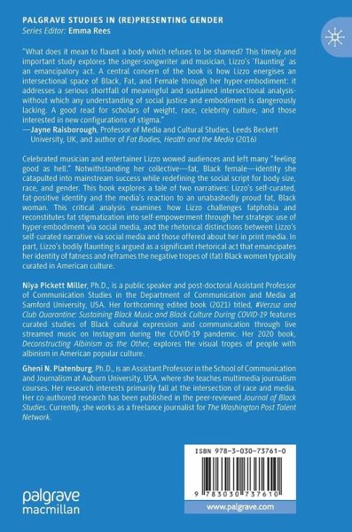 Celebrated musician and entertainer Lizzo wowed audiences and left many "feeling good as hell." Notwithstanding her collective-fat, Black female- identity she catapulted into mainstream success while redefining the social script for body size, race, and gender. This book explores a tale of two narratives: Lizzo's self-curated, fat-positive identity and the media's reaction to an unabashedly proud fat, Black woman. This critical analysis examines how Lizzo challenges fatphobia and reconstitutes fat stigmatization into self-empowerment through her strategic use of hyper-embodiment via social media, and the rhetorical distinctions between Lizzo's self-curated narrative via social media and those offered about her in print media. In part, Lizzo's bodily flaunting is argued as a significant rhetorical act that emancipates her identity of fatness and reframes the negative tropes of (fat) Black women typically curated in American culture.