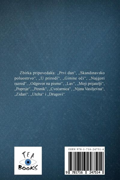 Zbirka pripovedaka: ¿Prvi dan", ¿Skandinavsko poluostrvo", ¿U prirodi", ¿Ginine öi", ¿Najgori razred", ¿Odgovor na pismo", ¿Lav", ¿Moji prijatelji", ¿Poprsje", ¿Pesnik", ¿Cve¿arnica", ¿Njina Vasiljevna", ¿Zidari", ¿Uteha" i ¿Drugovi".
