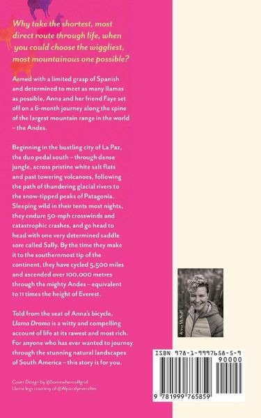 Why take the shortest, most direct route through life, when you could choose the wiggliest, most mountainous one possible? Armed with a limited grasp of Spanish and determined to meet as many llamas as possible, Anna and her friend Faye set off on a 6-month journey along the spine of the largest mountain range in the world - the Andes. Beginning in the bustling city of La Paz, the duo pedal south - through dense jungle, across pristine white salt flats and past towering volcanoes, following the path of thundering glacial rivers to the snow-tipped peaks of Patagonia. Sleeping wild in their tents most nights, they endure 50-mph crosswinds and catastrophic crashes, and go head to head with one very determined saddle sore called Sally. By the time they make it to the southernmost tip of the continent, they have cycled 5,500 miles and ascended over 100,000 metres through the mighty Andes - equivalent to 11 times the height of Everest. Told from the seat of Anna's bicycle, Llama Drama is a witty and compelling account of life at its rawest and most rich. For anyone who has ever wanted to journey through the stunning natural landscapes of South America - this story is for you.