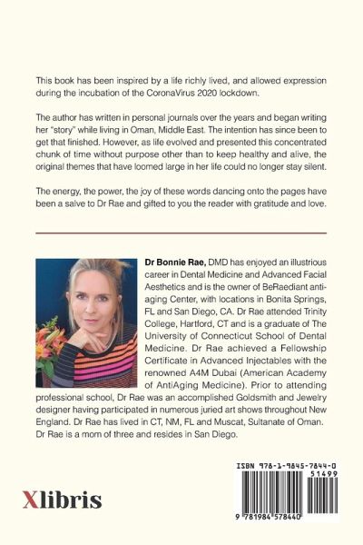 This book has been inspired by a life richly lived, and allowed expression during the incubation of the CoronaVirus 2020 lockdown. The author has written in personal journals over the years and began writing her "story" while living in Oman, Middle East. The intention has since been to get that finished. However, as life evolved and presented this concentrated chunk of time without purpose other than to keep healthy and alive, the original themes that have loomed large in her life could no longer stay silent. The energy, the power, the joy of these words dancing onto the pages have been a salve to Dr Rae and gifted to you the reader with gratitude and love.