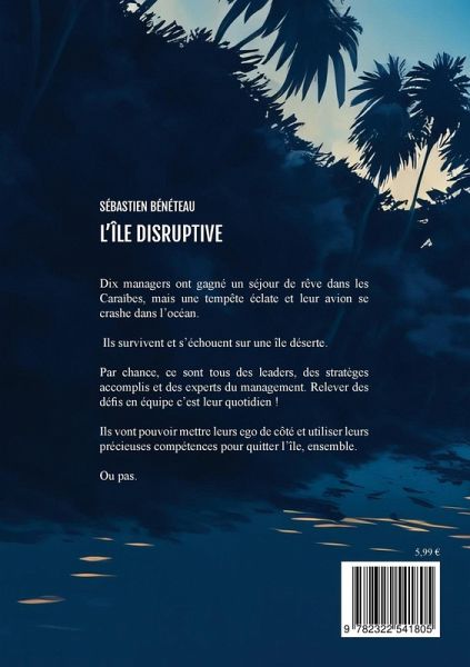 10 managers gagnent un séjour de rêve dans les Caraïbes suite à un concours sur Linkedin, organisé par l'association Les Disrupteurs. Hélas, leur voyage commence mal, leur avion est pris dans une tempête et ils se crashent dans l'océan.Les passagers survivent et parviennent à s'échouer sur une île déserte.Ils n'ont plus qu'un seul objectif : survivre.Et ça tombe bien car ce sont tous des leaders, des stratèges hors pair, des experts du management ! Ils vont mettre leurs ego de côté et utiliser leurs compétences pour travailler ensemble dans le but de quitter l'île.Un magnifique challenge pour ces chefs habitués à relever des défis en équipe.Ou pas.