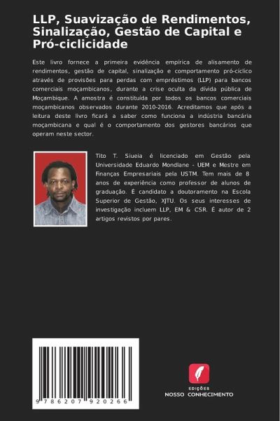 Este livro fornece a primeira evidência empírica de alisamento de rendimentos, gestão de capital, sinalização e comportamento pró-cíclico através de provisões para perdas com empréstimos (LLP) para bancos comerciais moçambicanos, durante a crise oculta da dívida pública de Moçambique. A amostra é constituída por todos os bancos comerciais moçambicanos observados durante 2010-2016. Acreditamos que após a leitura deste livro ficará a saber como funciona a indústria bancária moçambicana e qual é o comportamento dos gestores bancários que operam neste sector.