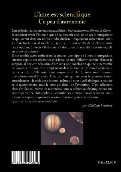 Une réflexion tacite en nous est aussi bien émerveillement et détresse de l'âme . Inconscient serait l'humain qui ne se poserait aucune de ces interrogations et qui vivrait dans un univers individualiste uniquement matérialiste, mais s'il franchit le pas, il touche au spirituel, il doit se décider à choisir entre deux options, à savoir s'il rêve ou s'il doit prendre une décision irrévocable en toute conscience. Une conclusion qui peut permettre de continuer à vivre tout simplement dans la sérénité. Je veux l'éclatement de la vérité. C'est tellement clair. On fait soi-même les recherches, sans se référer systématiquement aux grands penseurs, philosophes et scientifiques, c'est un travail personnel mais lorsque l'on s'aperçoit qu'on les rejoint, c'est une grande satisfaction. Quant à l'âme, elle est scientifique.