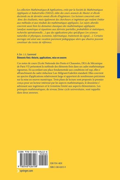 Ces notes de cours (Ecole Nationale des Ponts et Chaussées, DEA de Mécanique de Paris VI) présentent la méthode des éléments finis dans un cadre mathématique rigoureux. En accordant une place fondamentale aux conditions inf-sup, elles s'affranchissent du cadre réducteur Lax-Milgram/Galerkin standard. Elles couvrent un spectre d'applications relativement large et apportent de nombreuses précisions sur la mise en oeuvre numérique. Trois plans de lecture sont proposés: le premier conçu pour un lecteur intéressé par les aspects mathématiques, le deuxième s' adressant aux ingénieurs et le troisième limité aux aspects élémentaires. Les prérequis mathématiques, de niveau 2ème cycle universitaire, sont rappelés dans deux annexes.