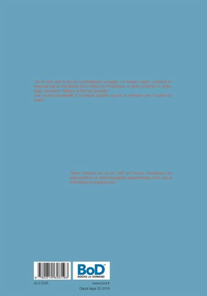 "Je ne suis que le jeu de combinaisons aveugles. Un hasard capté, conservé et reproduit par la machinerie Zéro Défaut de l'invariance, et ainsi convertie en ordre, règle, nécessité: Marilyn, la Bombe Sexuelle."Une course perpétuelle à la beauté parfaite qui est et demeure une "volonté de néant".
