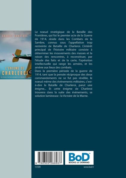 Le noeud stratégique de la Bataille des Frontières, qui fut le premier acte de la Guerre de 1914, réside dans les Combats de la Sambre, connus sous l'appellation trop restreinte de Bataille de Charleroi. L'intérêt principal de l'histoire militaire consiste à déterminer les mouvements des masses et la raison des rencontres, à reconstituer, par l'étude des faits et de la carte, l'opération intellectuelle qui range les armées, et les amène aux lieux des combats.Dans la première période de la guerre de 1914, tant que la pensée réciproque des deux commandements ne se fut pas révélée, le noeud même des événements militaires, c'est-à-dire la Bataille de Charleroi, parut une énigme... Et cette énigme de Charleroi trouvera dans la suite des événements, sa solution lumineuse : la Victoire de la Marne.