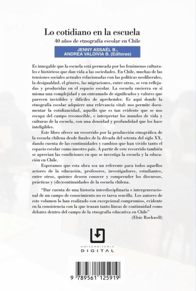 Es innegable que la escuela está permeada por los fenómenos culturales e históricos que dan vida a las sociedades. En Chile, muchas de las tensiones sociales actuales relacionadas con las políticas neoliberales, la desigualdad, el género, las migraciones, entre otras, se ven reflejadas y producidas en el espacio escolar. La escuela encierra en sí misma una complejidad y un entramado de significados y valores que parecen invisibles y difíciles de aprehender. Es aquí donde la etnografía escolar adquiere una relevancia vital: nos permite documentar la cotidianeidad, aquello que es tan evidente que se nos escapa del campo reconocible, e interpretar los mundos de vida y culturas de la escuela, con una densidad y profundidad que los hace inteligibles. Este libro ofrece un recorrido por la producción etnográfica de la escuela chilena desde finales de la década del setenta del siglo XX, dando cuenta de las continuidades y cambios que han vivido tanto el espacio escolar como nuestro país. A partir de este recorrido también se aprecian las condiciones en que se investiga la escuela y la educación en Chile. Esperamos que esta obra sea un referente para todos aquellos actores de la educación, profesores, investigadores, estudiantes, entre otros, quienes deseen conocer y comprender los discursos, prácticas y (dis)continuidades de la escuela chilena. "Dar cuenta de una historia interdisciplinaria e intergeneracional de un campo de conocimiento no es tarea sencilla. Los autores de este volumen lo han realizado con excepcional compromiso, evidente en la consistencia con la que trazan tanto líneas de continuidad como debates dentro del campo de la etnografía educativa en Chile". Elsie Rockwell.