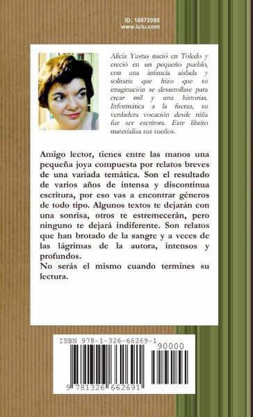 Amigo lector, tienes entre las manos una pequeña joya compuesta por relatos breves de una variada temática. Son el resultado de varios años de intensa y discontinua escritura, por eso vas a encontrar géneros de todo tipo. Algunos textos te dejarán con una sonrisa, otros te estremecerán, pero ninguno te dejará indiferente. Son relatos que han brotado de la sangre y a veces de las lágrimas de la autora, intensos y profundos. No serás el mismo cuando termines su lectura.