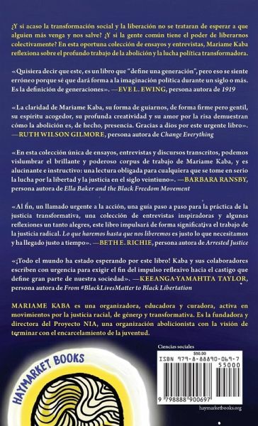 ¿Y si acaso la transformación social y la liberación no se trataran de esperar a que alguien más venga y nos salve? ¿Y si la gente común tiene el poder de liberarnos colectivamente? En esta oportuna colección de ensayos y entrevistas, Mariame Kaba reflexiona sobre el profundo trabajo de la abolición y la lucha política transformadora.