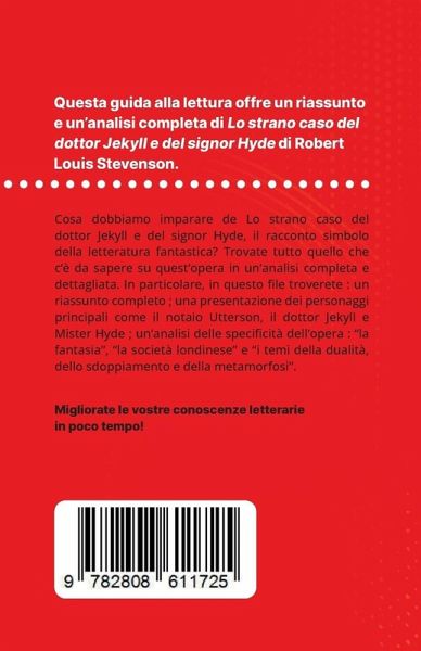 Cosa dobbiamo imparare de Lo strano caso del dottor Jekyll e del signor Hyde, il racconto simbolo della letteratura fantastica? Trovate tutto quello che c'è da sapere su quest'opera in un'analisi completa e dettagliata. In particolare, in questo file troverete: - Un riassunto completo - Una presentazione dei personaggi principali come il notaio Utterson, il dottor Jekyll e Mister Hyde - Un'analisi delle specificità dell'opera: la fantasia, la società londinese e i temi della dualità, dello sdoppiamento e della metamorfosi. Un'analisi dei riferimenti per comprendere rapidamente il significato dell'opera.
