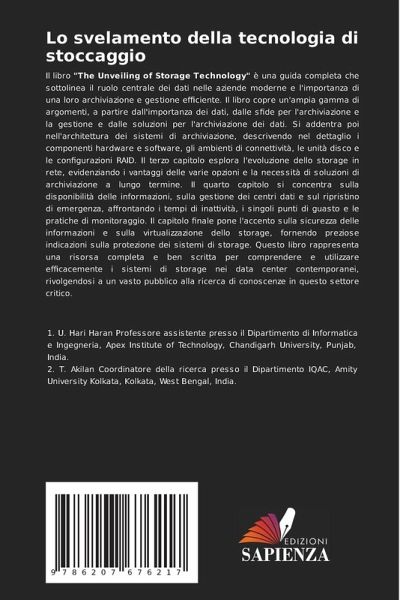 Il libro "The Unveiling of Storage Technology" è una guida completa che sottolinea il ruolo centrale dei dati nelle aziende moderne e l'importanza di una loro archiviazione e gestione efficiente. Il libro copre un'ampia gamma di argomenti, a partire dall'importanza dei dati, dalle sfide per l'archiviazione e la gestione e dalle soluzioni per l'archiviazione dei dati. Si addentra poi nell'architettura dei sistemi di archiviazione, descrivendo nel dettaglio i componenti hardware e software, gli ambienti di connettività, le unità disco e le configurazioni RAID. Il terzo capitolo esplora l'evoluzione dello storage in rete, evidenziando i vantaggi delle varie opzioni e la necessità di soluzioni di archiviazione a lungo termine. Il quarto capitolo si concentra sulla disponibilità delle informazioni, sulla gestione dei centri dati e sul ripristino di emergenza, affrontando i tempi di inattività, i singoli punti di guasto e le pratiche di monitoraggio. Il capitolo finale pone l'accento sulla sicurezza delle informazioni e sulla virtualizzazione dello storage, fornendo preziose indicazioni sulla protezione dei sistemi di storage. Questo libro rappresenta una risorsa completa e ben scritta per comprendere e utilizzare efficacemente i sistemi di storage nei data center contemporanei, rivolgendosi a un vasto pubblico alla ricerca di conoscenze in questo settore critico.