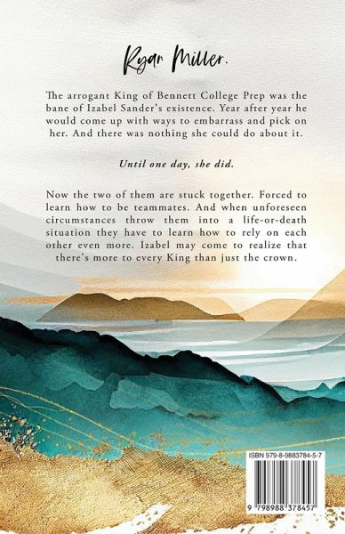 Ryan Miller. The arrogant King of Bennett College Prep was the bane of Izabel Sander's existence. Year after year he would come up with ways to embarrass and pick on her. And there was nothing she could do about it. Until one day, she did. Now the two of them are stuck together. Forced to learn how to be teammates. And when unforeseen circumstances throw them into a life-or-death situation, they have to learn how to rely on each other even more. Izabel may come to realize that there's more to every King than just the crown.