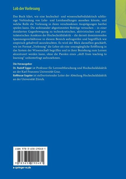 Miteinander oder gegeneinander? Aspekte des Wandels der Gemeinschaft von Lehrenden und Lernenden in der Geschichte der Vorlesung seit dem Ende des Zweiten Weltkriegs in Deutschland.- Rhetorikvorlesungen an der spätmittelalterlichen Universität. Wissensvermittlung zwischen Autoritätentexten und studentischer Lebenswirklichkeit.- Vorlesungskritik als Universitätskritik.- Die Vorlesung im Kontext der Universität als Gemeinschaft. Zur Interrelation von Rhetorik und Hochschuldidaktik.- Die Vorlesung in der Hochschuldidaktik.- Die Vorlesung - nur schlecht, wenn schlecht vorgelesen: Warum eine gut gemachte Vorlesung einen Platz im Methodenrepertoire verdient.- Schweigen, zuhören, kritisch weiterdenken. Vorlesungen und die Wissenschaftlichkeit wissenschaftlichen Wissens.- Interaktion und Architektur: Was man über die Vorlesung aus dem Hörsaal lernen kann.- Vorlesungen vor dem Hintergrund aktueller Flipped-Classroom-Ansätze.- Von der klassischen Vorlesung zur Digitalen Integration.- A problem raising device. Was Lehrende bei einem Verzicht auf Vorlesungen verlieren würden.