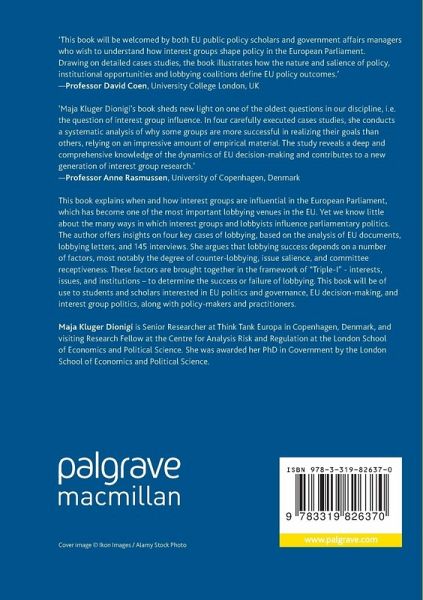 This book explains when and how interest groups are influential in the European Parliament, which has become one of the most important lobbying venues in the EU. Yet we know little about the many ways in which interest groups and lobbyists influence parliamentary politics. The author offers insights on four key cases of lobbying, based on the analysis of EU documents, lobbying letters, and 150 interviews. She argues that lobbying success depends on a number of factors, most notably the degree of counter-lobbying, issue salience, and committee receptiveness. These factors are brought together in the framework of "Triple-I" - interests, issues, and institutions - to determine the success or failure of lobbying. This book will be of use to students and scholars interested in EU politics and governance, EU decision-making, and interest group politics, along with policy-makers and practitioners.