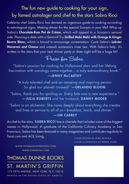 The fun new guide to cooking for your sign, by famed astrologist and chef to the stars, Sabra Ricci Celebrity chef Sabra Ricci has devised an ingenious guide to cooking according to astrological signs. Making dinner for the special Scorpio in your life? Whip up Sabra's Chocolate Rum Pot de Crème, which will appeal to a Scorpio's sensual side. Planning a date with a Gemini? Try Grilled Mahi Mahi with Orange & Ginger Beurre Blanc, which is bound to encourage conversation. Cook Sabra's Lobster Macaroni and Cheese and unleash someone's inner Leo. With Sabra's help, it's written in the stars that your next dinner party or date night will be a huge hit!