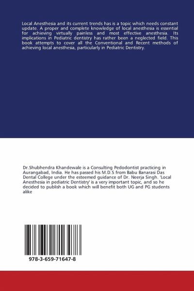 Local Anesthesia and its current trends has is a topic which needs constant update. A proper and complete knowledge of local anesthesia is essential for achieving virtually painless and most effective anesthesia. Its implications in Pediatric dentistry has rather been a neglected field. This book attempts to cover all the Conventional and Recent methods of achieving local anesthesia, particularly in Pediatric Dentistry.