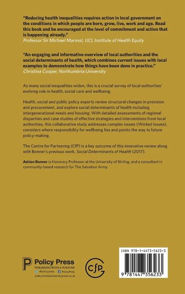 The role of local authorities in health and social care at a time of widening social inequality is surveyed in this detailed analysis from health and public policy experts. With reviews of health determinants in the socio-political context, analysis of regional disparities and case studies of strategies and interventions, it points the way to future policy-making, procurement, commissioning in complexity, and promoting greater equality as a key determinant of wellbeing.