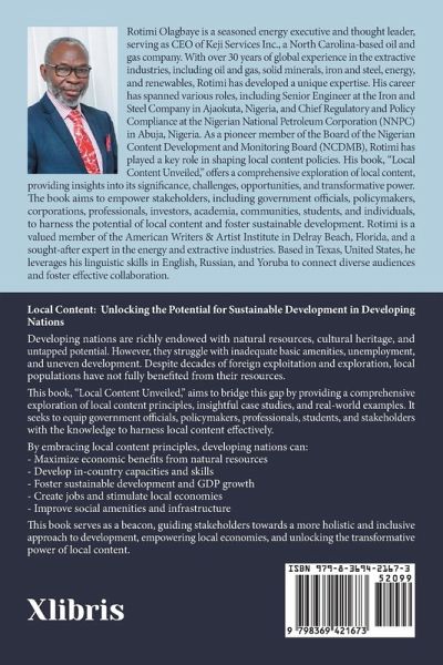 Local Content: Unlocking the Potential for Sustainable Development in Developing Nations Developing nations are richly endowed with natural resources, cultural heritage, and untapped potential. However, they struggle with inadequate basic amenities, unemployment, and uneven development. Despite decades of foreign exploitation and exploration, local populations have not fully benefited from their resources. This book, "Local Content Unveiled," aims to bridge this gap by providing a comprehensive exploration of local content principles, insightful case studies, and real-world examples. It seeks to equip government officials, policymakers, professionals, students, and stakeholders with the knowledge to harness local content effectively. By embracing local content principles, developing nations can: - Maximize economic benefits from natural resources - Develop in-country capacities and skills - Foster sustainable development and GDP growth - Create jobs and stimulate local economies - Improve social amenities and infrastructure This book serves as a beacon, guiding stakeholders towards a more holistic and inclusive approach to development, empowering local economies, and unlocking the transformative power of local content.