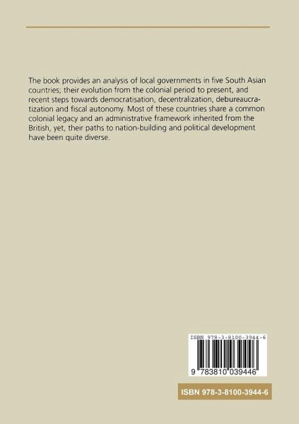 The book provides an analysis of local government in five South Asian countries; their evolution from the colonial period to present, and recent steps towards democratisation, decentralization, debureaucratization and fiscal autonomy. Most of these countries share a common colonial legacy and an administrative framework inherited from the British, yet, their paths to nation-building and political development have been quite deverse.
