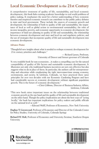 Provides a comprehensive look at local economic development and public policy, placing special emphasis on quality of life and sustainability. It draws extensively on case studies, and includes both mainstream and alternative perspectives in dealing with economic growth and development issues. The contributions of economic theories and empirical research to the policy debates, and the relationship of both to quality of life and sustainability are explored and clarified.
