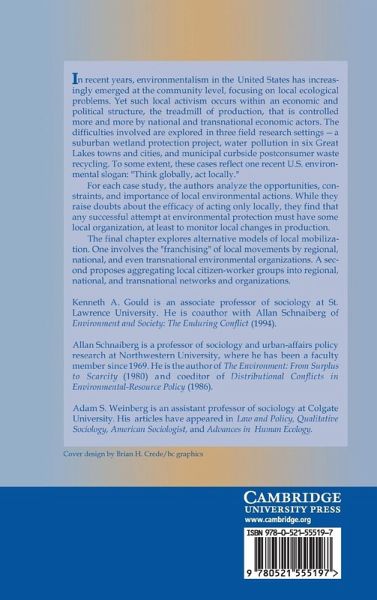 In recent years, environmentalism in the US has increasingly emerged at the community level, focusing on local ecological problems. Correspondingly, the American environmental movement has exhorted its supporters to 'think globally' but 'act locally'. The authors examine this modern environmental mantra by analysing the opportunities and constraints on local environmental action posed by economic and political structures at all levels. The difficulties involved in local activism are explored in three case studies - a wetlands protection project, water pollution of the Great Lakes, and consumer waste recycling. The final chapter then reflects on the challenges facing citizen-worker movements in each case study, and concludes that, despite the inherent difficulties, any successful attempt at mobilisation must have a local component.