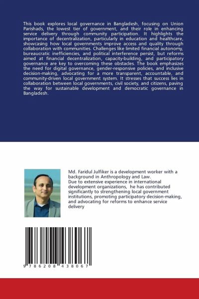 This book explores local governance in Bangladesh, focusing on Union Parishads, the lowest tier of government, and their role in enhancing service delivery through community participation. It highlights the importance of decentralization, particularly in education and healthcare, showcasing how local governments improve access and quality through collaboration with communities. Challenges like limited financial autonomy, bureaucratic inefficiencies, and political interference persist, but reforms aimed at financial decentralization, capacity-building, and participatory governance are key to overcoming these obstacles. The book emphasizes the need for digital governance, gender-responsive policies, and inclusive decision-making, advocating for a more transparent, accountable, and community-driven local government system. It stresses that success lies in collaboration between local governments, civil society, and citizens, paving the way for sustainable development and democratic governance in Bangladesh.