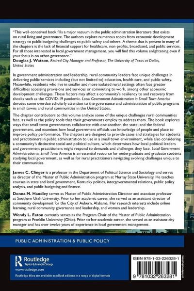 Local Government Administration in Small Town America devotes some overdue scholarly attention to the governance and administration of public programs in small towns and rural communities in the United States.