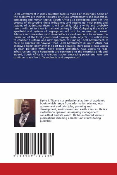 Local Government in many countries faces a myriad of challenges. Some of the problems are inclined towards structural arrangements and leadership, operations and human capital. South Africa as a developing state is in the process of discovering these imbalances and setting up mechanisms and systems of addressing them. It will certainly take a while and probably results will start to show in the next century (2100). Collapsing the walls of apartheid and systems of segregation will not be an overnight event. Scholars and researchers and stakeholders should continue to improve the realization of the local government developmental objects. It is critical also to consider a rethink and new approach to running Local Government. It must be appreciated however that, Local Government in South Africa has improved significantly over the past two decades. More people have access to clean portable water, have decent sanitation, have access to road infrastructure, more households are connectedto the electricity grids and indeed, South Africa is a rainbow nation embracing peace and love. We continue to say "No to Xenophobia and perpetrators"