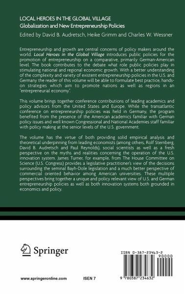 Entrepreneurship and growth are central concerns of policy makers around the world. Local Heroes in the Global Village introduces public policies for the promotion of entrepreneurship on a comparative, primarily German-American level. The book contributes to the debate what role public policies play in stimulating national and regional economic growth. With a better understanding of the complexity and variety of existent entrepreneurship policies in the U.S. and Germany the reader of this volume will be able to formulate best practice, hands-on strategies which aim to promote nations as well as regions in an "entrepreneurial economy".