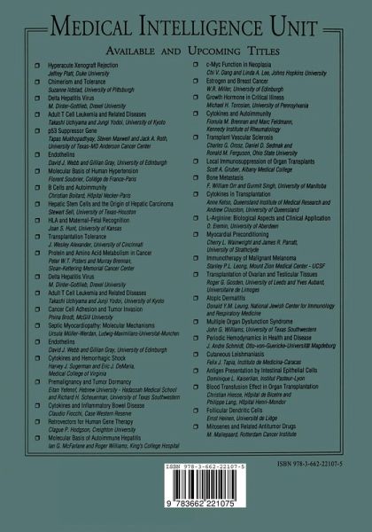 Section A: Background.- 1. Local Regulation of Allograft Rejection.- 2. Pharmacokinetic Advantage of Regional Drug Delivery.- 3. Early Studies of Local Immunosuppression (1964-1984).- Section B: Pump-Based Local Infusion in Rat Allograft Models.- 4. Selective Immunosuppression by Local Treatment of the Allograft: Studies on Intrarenal Prednisolone and Intracardiac Budesonide Delivery in the Rat.- 5. Local Immunosuppression of Rat Cardiac, Liver, and Small Bowel Allografts.- 6. Inhibition of Cardiac Allograft Rejection by Continuous Local Infusion of 16,16 Di-Methyl PGE2.- 7. Intrarenal Administration of Anti T Cell-Monoclonal Antibody.- 8. Intraportal Delivery of Immunosuppressants to Intrahepatic Islet Allografts.- Section C: Pump-Based Local Infusion in Canine Allograft Models.- 9. Local Heparin, 6-Mercaptopurine, Prednisolone, and Mizoribine Delivery in a Canine Renal Allograft Model.- 10. Intraportal Cyclosporine A in Canine Liver Transplantation.- Section D: Other Drug Targeting Systems for Achieving Local Immunosuppression.- 11. Liposomal Cyclosporine A.- 12. Liposomal FK506 in a Canine Hepatic Allograft Model.- 13. Cyclosporine Aerosol in Lung Transplantation.- 14. Site-Specific Immunosuppression with Topical Agents.- 15. Local Immunosuppression in Corneal Transplantation.- 16. Controlled-Release Drug Matrices for Local Immunosuppression of Organ Transplants.- 17. Gene Transfer to the Transplanted Organ.- 18. Immunomodulation of Islet Allografts with Genetically Modified Muscle Cells.- 19. Sertoli Cells in Islet Transplantation: Testicular Immune Privilege.- Section E: Conclusion.
