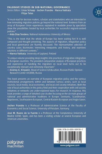 This book presents an overview of European migration policy and the various institutional arrangements within and between various actors, such as local councils, local media, local economies, and local civil society initiatives. Both the role of local authorities in this policy field and their cooperation with civil society initiatives or networks are under-explored topics for research. In response, this book provides a range of detailed case studies focusing on the six main groups of national and administrative traditions in Europe: Germanic, Scandinavian, Napoleonic, Southeastern European, Central-Eastern European and Anglo-Saxon.