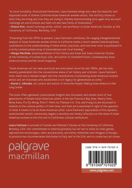 This book offers gendered, postcolonial insights into the poetic and artistic work of four generations of female Asian American artists in the San Francisco Bay Area. Nancy Hom, Betty Kano, Flo Oy Wong, Trinh T. Minh-ha, Theresa H.K. Cha, and Hung Liu are discussed in relation to the cultural politics of their time, and their art is examined in light of the question of what it means to be an Asian American artist. Laura Fantone's exploration of this dynamic, understudied artistic community begets a sensitive and timely reflection on the state of Asian American women in the USA and in Californian cultural institutions.