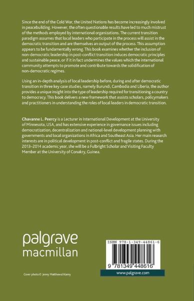 This book provides an in-depth analysis into the ways in which local leaders impact internationally-led democratic transition. Using three key case studies, Burundi, Cambodia and Liberia, it re-evaluates current transition paradigms delivering a new framework for understanding the roles of local leaders in democratic transition and peacebuilding.