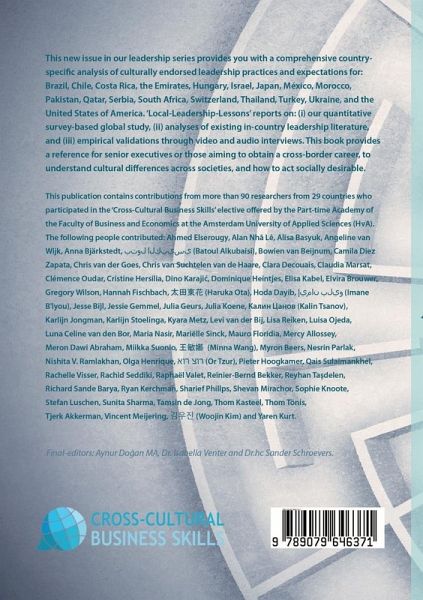 This new issue in the CCBS leadership series provides you with a comprehensive country-specific analysis of culturally endorsed leadership practices and expectations for: Brazil, Chile, Costa Rica, the Emirates, Hungary, Israel, Japan, México, Morocco, Pakistan, Qatar, Serbia, South Africa, Switzerland, Thailand, Turkey, Ukraine, and last but not least the United States of America. This book provides a reference for senior executives or those aiming to obtain a cross-border career, to understand cultural differences across societies, and how to act socially desirable. This publication contains contributions from more than 90 researchers from 29 countries who participated in the 'Cross-Cultural Business Skills' elective offered by the Amsterdam University of Applied Sciences (HvA).