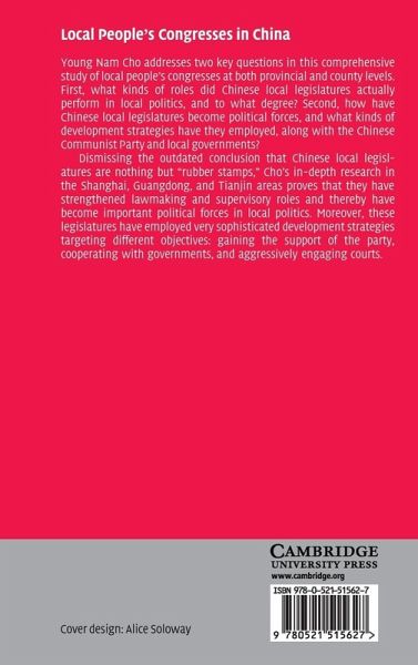 Cho's in-depth research reveals how and why Chinese local legislatures have become important political forces in local politics.