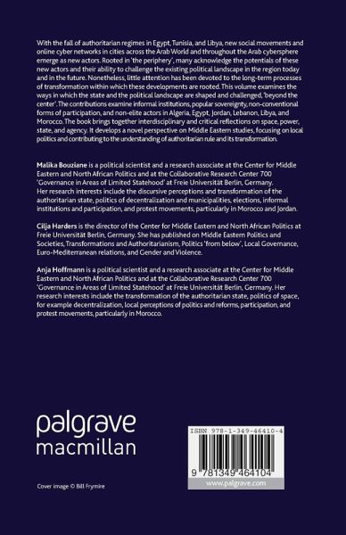 1. Analyzing Politics beyond the Center in an Age of Transformation; Anja Hoffmann, Malika Bouziane & Cilja Harders PART I 2. Contemporary Governscapes: Sovereign Practice and Hybrid Orders beyond the Center?; Finn Stepputat 3. The Bureaucratic Mode of Governance and Pratical Norms in West Africa and Beyond; Jean-Pierre Olivier De Sardan 4. Beyond the 'Radicalism-Pragmatism Dialectic' in the Study of Local Politics: Contrasting Privatizing, Communitarian, and 'Vulgar' Expressions in Revolutionary Cairo; Paul Amar 5. The Inward Turn and its Vicissitudes: Culture, Society and Politics in Post-1967 Arab Leftist Critiques; Fadi A. Bardawil PART II 6. Bringing the Local Back In: Local Politics between Informalization and Mobilization in an Age of Transformation in Egypt; Cilja Harders 7. Negotiating (Informal) Institutional Change: Understanding Local Politics in Jordan; Malika Bouziane 8. Morocco between Decentralization and Recentralization: Encountering the State in the 'Useless Morocco'; Anja Hoffmann 9. Revisiting Politics in Spaces 'Beyond the Centre:' The Case of the Shatila Palestinian Refugee Camp in Lebanon; Hala Caroline Abou-Zaki 10. Political Participation in Algeria beyond the Polling Stations: Insights from Tizi-Ouzou; Naoual Belakhdar 11. Tribes, Revolution, and Political Culture in the Cyrenaica Region of Libya; Thomas Hüsken CONCLUSION 12. Conclusion; Cilja Harders, Anja Hoffmann & Malika Bouziane