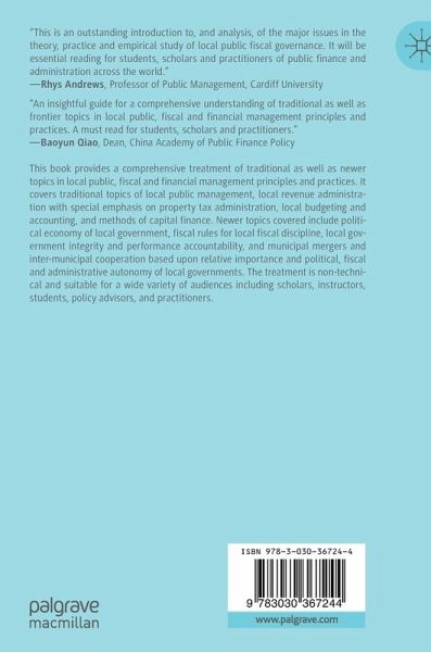 This book provides a comprehensive treatment of traditional as well as newer topics in local public, fiscal and financial management principles and practices. It covers traditional topics of local public management, local revenue administration with special emphasis on property tax administration, local budgeting and accounting, and methods of capital finance. Newer topics covered include political economy of local government, fiscal rules for local fiscal discipline, local government integrity and performance accountability, and municipal mergers and inter-municipal cooperation based upon relative importance and political, fiscal and administrative autonomy of local governments. The treatment is non-technical and suitable for a wide variety of audiences including scholars, instructors, students, policy advisors, and practitioners.