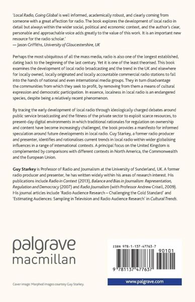 'Local Radio, Going Global is well informed, academically robust, and clearly coming from someone with a great affection for radio. The book explores the development of local radio in detail but always within the wider social, political and economic context, and the author's clear, personable and approachable voice adds greatly to the value of this work. It is an important new resource for the radio scholar.' - Jason Griffiths, University of Gloucestershire, UK