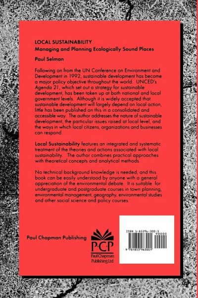 Following on from the UN Conference on Environment and Development in 1992, sustainable development has become a major policy objective throughout the world. UNCED's Agenda 21, which set out a strategy for sustainable development, has been taken up at both national and local government levels. Although it is widely accepted that sustainable development will largely depend on local action, little has been published on this in a consolidated and accessible way. In this book, Paul Selman addresses the nature of sustainable development, the particular issues raised at local level, and the ways in which local citizens, organizations and businesses can respond. The book features an integrated and systematic treatment of the theories and actions associated with local sustainability. The author combines practical approaches with theoretical concepts and analytical methods. No technical background knowledge is needed, and this book should be easily understood by anyone with a general appreciation of the environmental debate. " Selman has researched the topic very thoroughly and has struggled through the complexities with great skill and given us the information to help our own thinking evolve." ENVIRONMENTAL EDUCATION RESEARCH " Paul Selman's contribution to the emerging literature on the local dimension of sustainable development is to be welcomed for its straightforward and lucid treatment of the subject." JOURNAL OF ENVIRONMENTAL PLANNING & MANAGEMENT " This text is a welcome contribution to the exploration of what can be done at a local level to protect the environment." LOCAL GOVERNMENT STUDIES " It is very difficult to produce a textbook, especially in such a swift moving field, and this book is a considerable achievement." LOCAL ENVIRONMENT