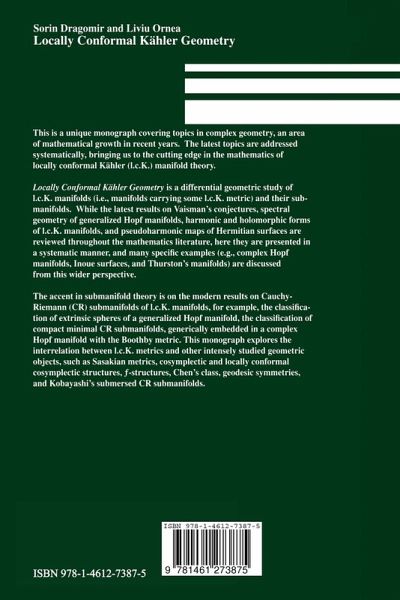 1 L.c.K. Manifolds.- 2 Principally Important Properties.- 2.1 Vaisman's conjectures.- 2.2 Reducible manifolds.- 2.3 Curvature properties.- 2.4 Blow-up.- 2.5 An adapted cohomology.- 3 Examples.- 3.1 Hopf manifolds.- 3.2 The Inoue surfaces.- 3.3 A generalization of Thurston's manifold.- 3.4 A four-dimensional solvmanifold.- 3.5 SU(2) x S1.- 3.6 Noncompact examples.- 3.7 Brieskorn & Van de Ven's manifolds.- 4 Generalized Hopf manifolds.- 5 Distributions on a g.H. manifold.- 6 Structure theorems.- 6.1 Regular Vaisman manifolds.- 6.2 L.c.K.0 manifolds.- 6.3 A spectral characterization.- 6.4 k-Vaisman manifolds.- 7 Harmonic and holomorphic forms.- 7.1 Harmonic forms.- 7.2 Holomorphic vector fields.- 8 Hermitian surfaces.- 9 Holomorphic maps.- 9.1 General properties.- 9.2 Pseudoharmonic maps.- 9.3 A Schwarz lemma.- 10 L.c.K. submersions.- 10.1 Submersions from CH?n.- 10.2 L.c.K. submersions.- 10.3 Compact total space.- 10.4 Total space a g.H. manifold.- 11 L.c. hyperKähler manifolds.- 12 Submanifolds.- 12.1 Fundamental tensors.- 12.2 Complex and CR submanifolds.- 12.3 Anti-invariant submanifolds.- 12.4 Examples.- 12.5 Distributions on submanifolds.- 12.6 Totally umbilical submanifolds.- 13 Extrinsic spheres.- 13.1 Curvature-invariant submanifolds.- 13.2 Extrinsic and standard spheres.- 13.3 Complete intersections.- 13.4 Yano's integral formula.- 14 Real hypersurfaces.- 14.1 Principal curvatures.- 14.2 Quasi-Einstein hypersurfaces.- 14.3 Homogeneous hypersurfaces.- 14.4 Type numbers.- 14.5 L. c. cosymplectic metrics.- 15 Complex submanifolds.- 15.1 Quasi-Einstein submanifolds.- 15.2 The normal bundle.- 15.3 L.c.K. and Kähler submanifolds.- 15.4 A Frankel type theorem.- 15.5 Planar geodesic immersions.- 16 Integral formulae.- 16.1 Hopf fibrations.- 16.2 The horizontallifting technique.- 16.3 The main result.- 17 Miscellanea.- 17.1 Parallel IInd fundamental form.- 17.2 Stability.- 17.3 f-Structures.- 17.4 Parallel f-structure P.- 17.5 Sectional curvature.- 17.6 L. c. cosymplectic structures.- 17.7 Chen's class.- 17.8 Geodesic symmetries.- 17.9 Submersed CR submanifolds.- A Boothby-Wang fibrations.- B Riemannian submersions.