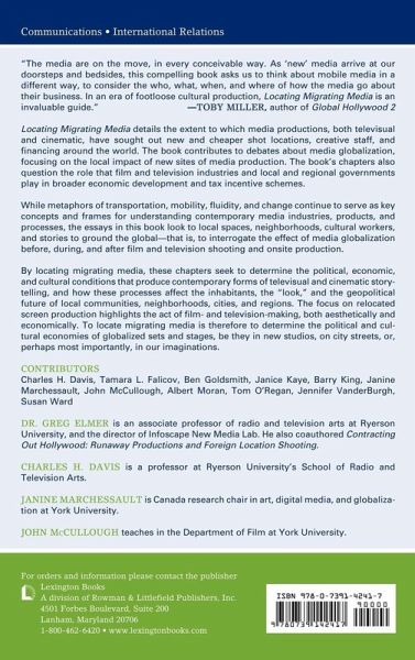 Locating Migrating Media details the extent to which media productions, both televisual and cinematic, have sought out new and cheaper shot locations, creative staff, and financing around the world. The book contributes to debates about media globalization, focusing on the local impact of new sites of media production. The book's chapters also question the role that film and television industries and local and regional governments play in broader economic develop and tax incentive schemes.