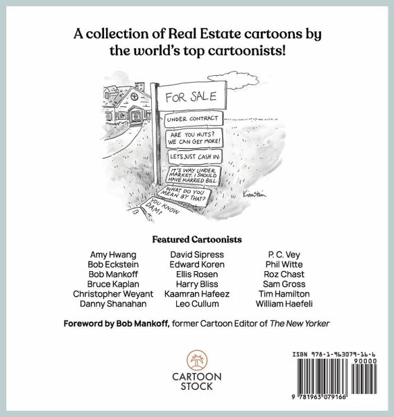 Dive into the rollercoaster realm of real estate through the eyes of the world's best cartoonists. Real estate is a place where a "cozy" studio translates to "your bed is in the kitchen," and where "fixer-upper" means "bring a bulldozer." It's an arena where hope, ambition, and a healthy dose of delusion collide, making it the perfect subject for cartoons. Featuring 86 cartoons from cartoonists including Bob Mankoff, David Sipress, Roz Chast and many more. Kick off your shoes, put up your feet (if you've got the room), and enjoy this tour through the lighter side of real estate. Because if there's one thing we all know, it's that in the world of real estate buying, selling, and living, sometimes laughter is the best, and cheapest, amenity of all.