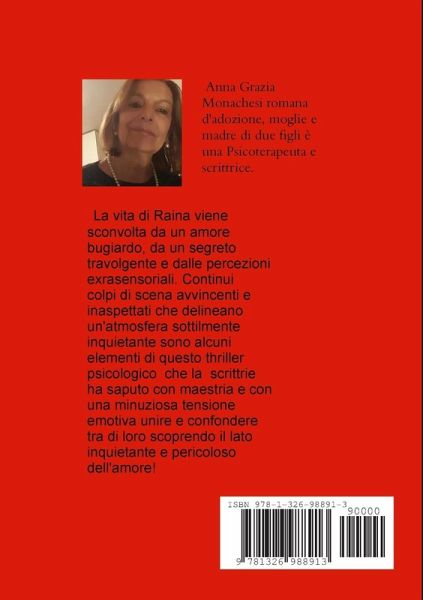 La vita di Raina viene sconvolta da un amore bugiardo, dalle percezioni extrasensoriali e da un segreto travolgente. Continui colpi di scena avvincenti e inaspettati che delineano un'atmosfera sottilmente inquietante sono alcuni elementi di questo thriller psicologico che la scrittrice ha saputo con maestria e con una minuziosa tensione emotiva unire e confondere tra di loro scoprendo il lato inquietante e pericoloso dell'amore!