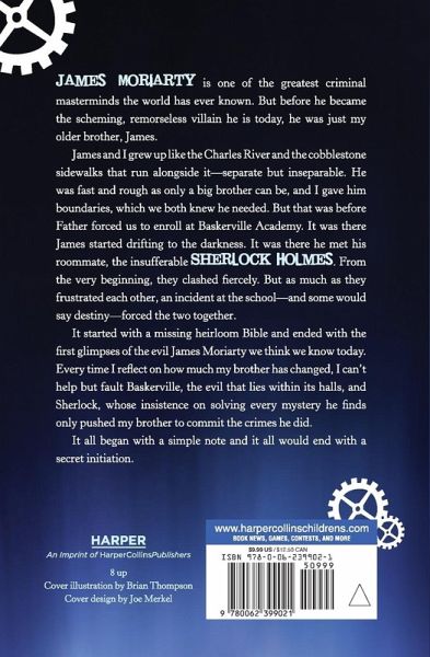 "Will leave you dying to know more."--Rick Riordan, author of the Percy Jackson series The New York Times bestselling author of the Peter and the Starcatchers and Kingdom Keepers series, Ridley Pearson, brings us the riveting first tale of the Lock and Key trilogy about the origins of the rivalry between literature's most famous enemies--Sherlock Holmes and James Moriarty, told from the perspective of James's observant little sister, Moria. Before James grew up to be a ruthless, remorseless villain, he was a curious boy from Boston, with a penchant for trouble and an acid tongue. Thrown into a boarding school against his wishes, James winds up rooming with a most unlikely companion: a lanky British know-it-all named Sherlock Holmes ("Lock" to his friends). An heirloom Bible, donated by the Moriarty family more than a hundred years ago, has gone missing, and it doesn't take long for the two to find themselves embroiled in the school-wide scandal. The school is on lockdown until it's found, strange clues keep finding their way to James, and a secret society lurks behind it all. It's a brave new reimagining of the Sherlock Holmes series as only master of suspense Ridley Pearson could envision. As Rick Riordan, author of the Percy Jackson series, says, "This tale will change the way you see Sherlock Holmes and leave you dying to know more."
