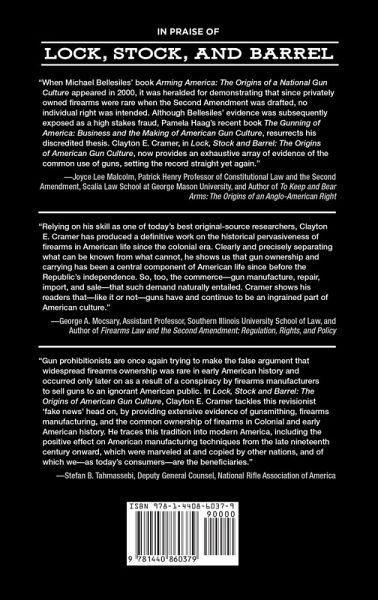 This provocative book debunks the myth that American gun culture was intentionally created by gun makers and demonstrates that gun ownership and use have been a core part of American society since our colonial origins. Revisionist historians argue that American gun culture and manufacturing are relatively recent developments. They further claim that widespread gun violence was largely absent from early American history because guns of all types, and especially handguns, were rare before 1848. According to these revisionists, American gun culture was the creation of the first mass production gun manufacturers, who used clever marketing to sell guns to people who neither wanted nor needed them. However, as proven in this first scholarly history of "gun culture" in early America, gun ownership and use have in fact been central to American society from its very beginnings. Lock, Stock, and Barrel: The Origins of American Gun Culture shows that gunsmithing and gun manufacturing were important parts of the economies of the colonies and the early republic and explains how the American gun industry helped to create our modern world of precision mass production and high wages for workers.