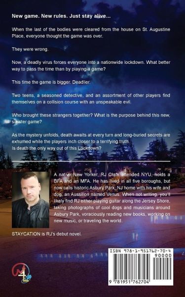 New game. New rules. Just stay alive... When the last of the bodies were cleared from the house on St. Augustine Place, everyone thought the game was over. They were wrong. Now, a deadly virus forces everyone into a nationwide lockdown. What better way to pass the time than by playing a game? This time the game is bigger. Deadlier. Two teens, a seasoned detective, and an assortment of other players find themselves on a collision course with an unspeakable evil. Who brought these strangers together? What is the purpose behind this new, sinister game? As the mystery unfolds, death awaits at every turn and long-buried secrets are exhumed while the players inch closer to a terrifying truth. Is death the only way out of this Lockdown? Prepare for the unexpected in this genre bending, nightmare fueled, Staycation sequel that will keep you guessing until the end. Are you ready to play?