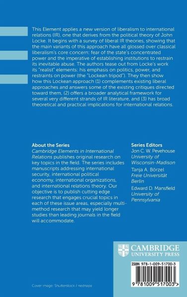 This Element applies a new version of liberalism to international relations (IR), one that derives from the political theory of John Locke. The authors tease out the "realist" elements from his political writings: his emphasis on politics, power, and restraints on power.